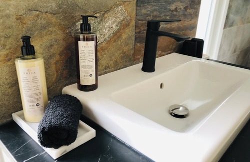 While you're here, you can enjoy all the comforts of home and more, including a jetted bathtub and WiFi, as well as air conditioning and an ironing board. Other amenities include towels, soap, toilet paper, and a hair dryer.