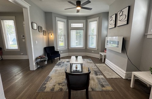 Esta casa de vacaciones tan agradable en Chicago te permitirá disfrutar de todo tipo de actividades. Estarás a 8min a pie de Lago Míchigan y a 2min en coche de Jackson Park. El alojamiento dispone de garaje, de modo que puedes dejar tu vehículo u optar por la opción más rápida. Si te apetece ampliar tus horizontes y conocer lugares cercanos, estarás a 3min a pie de la Estación de tren de Chicago Windsor Park y a 8min de la Estación de tren de Chicago 79th Street (Cheltenham), de modo que coger el tren te resultará muy sencillo.