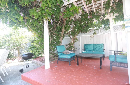 Our favorite hang-out place is the pergola in the backyard. Sit back, feel the breeze, close your eyes and relax, do yoga or sip a drink under the wisteria vines covering the pergola - it's magical!