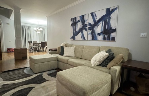 Este alojamiento de 5 dormitorios y 3 baños cuenta con una sala de estar, un comedor, una zona para barbacoas y chimenea. Conéctate al wifi gratis, o relájate frente a un Smart TV. El cuarto de baño incluye un secador de pelo, toallas y papel higiénico. La cocina está equipada con horno, placa de cocina y frigorífico, además de cafetera y tetera, hervidor eléctrico y microondas. Podrás viajar con poco equipaje, porque tendrás una lavadora y una secadora a tu disposición. Otras comodidades incluyen ropa de cama, un escritorio, una tabla de planchar y aire acondicionado.