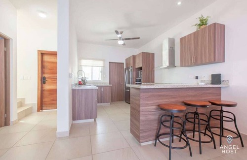 Al instalarte en este alojamiento de 3 dormitorios y 2 baños, encontrarás una sala de estar, aire acondicionado y oficinas. El cuarto de baño incluye un secador de pelo, toallas y papel higiénico. La cocina está equipada con horno, placa de cocina y frigorífico, además de cafetera y tetera, microondas y utensilios de cocina. Podrás viajar con poco equipaje, porque tendrás una lavadora y una secadora a tu disposición.