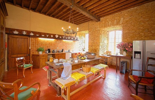 * El castillo vasta cocina (42m² - hermosa chimenea de piedra, cuarto de servicio *) es muy adecuado para la preparación de comidas para la presentadora o un gerente, con estufa profesional, refrigerador, procesador de alimentos, máquina de café servicio de Nespresso Villeroy & Bosch, cubiertos Christofle, etc ...