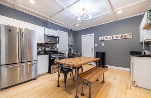 Step into an exhilarating world of vintage charm and modern luxury at this Steampunk-themed loft, just 2 miles from Ford Field, Little Caesars Arena, and Comerica Park! Nestled in a safe, vibrant area, this 4-bedroom, 1.5-bathroom loft sleeps 8 and is within walking distance of Dequindre Cut and Eastern Market—Detroit's top attractions. With a fully equipped kitchen and stunning steampunk décor, it’s the perfect spot for an unforgettable adventure. Plus, Canada is only 10 minutes away!