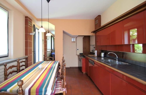 At Castello, Italy, the main attraction is the large villa "Al Piano" which features a main house and an outbuilding. This vacation rental offers a private, fenced park spanning 1,500 square meters, complete with a terraced garden and a seasonal swimming pool (16 x 9 meters, depth ranging from 100 to 300 centimeters, available from May 1st to September 30th). Enjoy the convenience of a shower/WC in the pool area, as well as Internet WiFi, a yard, and parking facilities.
