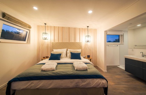 Las nuevas suites flotantes exclusivas se encuentran en la pequeña Marina Naturhafen Krummin de 4 estrellas en la isla de Usedom: la vista del agua acompaña sus vacaciones todo el tiempo. En el desayuno en la terraza, el día comienza con una vista panorámica del Krumminer Wiek. Románticas puestas de sol terminan el día en el puerto natural. Los relojes en el puerto de Krummin son diferentes. Sin problemas, sin citas, sin estrés: deje la vida cotidiana en el puerto. Muchos detalles y un mobiliario exclusivo te hacen sentir cómodo en la casa flotante a primera vista. Por la mañana, el sol sonríe a través de las ventanas del piso al techo y permite que el día comience con mucho sol. Por la noche, la terraza lo invita a una copa de vino y a una vista del cielo estrellado con una vista panorámica sobre el Krumminer Wiek. En otoño e invierno, muchas velas y calefacción por suelo radiante crean un ambiente acogedor y acogedor en la sala de estar. Bicicletas y canoas están disponibles en el puerto para explorar los alrededores. Con un viaje de navegación opcional desde el puerto natural, puede descubrir el lado marítimo de Usedom con un patrón. En el pueblo de Krummin, te esperan idílicos cafés con jardín.