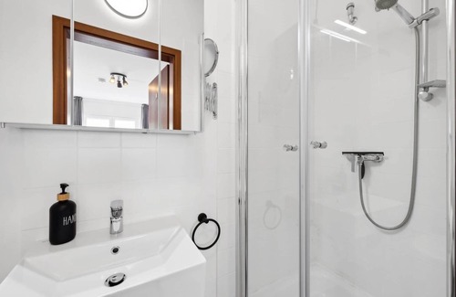 The bathroom is equipped with a shower. We provide you with fresh, high-quality towels and a combination of shower gel and shampoo in your accommodation.