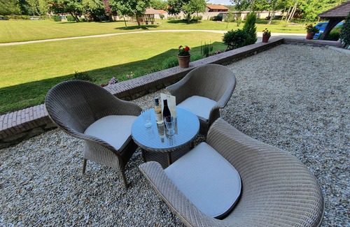 Relájate en la bañera de hidromasaje o tómate algo en el jardín de esta casa de vacaciones de 800 m² que, además, cuenta con un porche o patio. En cuanto al interior, puedes disfrutar del wifi gratis y de la televisión.