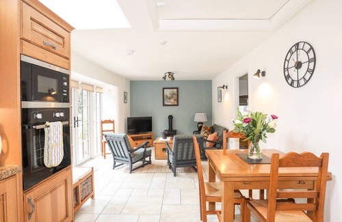 Servicios: Calefacción central con fuego eléctrico. Horno eléctrico y vitrocerámica, nevera-congelador, lavavajillas, lavadora, microondas, cafetera. TV, DVD, WiFi. Ropa de cama y toallas proporcionados. Amplio aparcamiento en la calle. Área de asientos pavimentada cerrada, además de 14 acres de terrenos compartidos con jardines, casa de verano, lago. Un perro bienvenido. Pubs, tiendas y restaurantes 4. 5 millas. NOTA Hay ganado alrededor de la tierra, por lo que los perros deben mantenerse con una correa. NOTA: También se puede reservar con The Honey Pot para 4 personas.