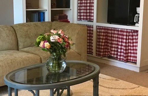 "" Birch "es un refugio privado en una casa de campo, escondido detrás de una puerta de jardín adornada; un apartamento acogedor y confortable para 2-4 personas que consta de dos habitaciones grandes y bien equipadas con toques modernos en un entorno ridículamente encantador de Door County. La cabaña recién incluida es parte de los bonitos edificios de Green Gables en la parte norte de Ephraim, con sus propios hermosos jardines, y está a poca distancia a pie de galerías, tiendas, mini golf, desayuno y pizza, o a poca distancia en coche de El pueblo de Efraín y el agua. "Birch" recibe mucha luz natural de un gran ventanal en la parte delantera y de una puerta corrediza del patio en la parte posterior, que se abre a una pequeña área de jardín con flores veraniegas, y desde allí a un césped muy grande (pero cerrado de forma segura) - Ideal para niños, o para observar las estrellas. Una habitación grande tiene una elegante cama King, mientras que la sala de estar tiene un verdadero sofá cama Queen. La sala de estar tiene una biblioteca grande y atractiva de libros, además de un televisor de 49 "(con cable, Netflix y Amazon Prime). Toda la ropa de cama no es alergénica. Hay una cabina de ducha muy espaciosa dentro de un baño privado. El apartamento también está equipado con modestas instalaciones de cocina que consisten en microondas, nevera, tostadora, cafetera y vajilla / utensilios sencillos. Una mesa de comedor contemporánea y cuatro sillas completan el apartamento, un lugar encantador para relajarse y desde el cual explorar el condado de Door.