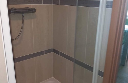 Duplex accommodation. Ground floor with living room opening onto the terrace and views of the swimming pool, lake and golf course. Super equipped kitchen and shower room.
