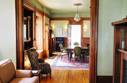 Welcome to The Kingfisher Inn, a stunning historic mansion in charming Fort Scott, Kansas! With 6 spacious bedrooms and 6 private bathrooms, this retreat is perfect for families or groups. Enjoy modern comforts like air conditioning, heating, Wi-Fi, and a fully equipped kitchen with a stove and refrigerator. Relax in a blend of history and convenience—your unforgettable getaway starts here! Gather, Relax, and Make Memories at The Kingfisher Inn.