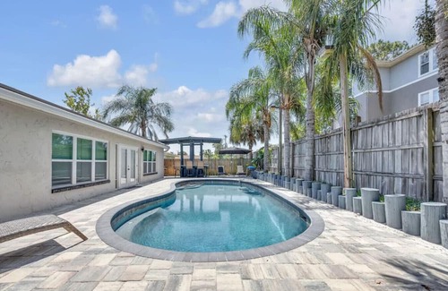 The Palm Escape Retreat Se encuentra en Isle of Palms. The Palm Escape Retreat ofrece alojamiento, con Mascota amigable, Piscina, TV, Entre otras comodidades. Estas características Casa Mascota amigable, Piscina, TV, Para que su estadía sea cómoda.