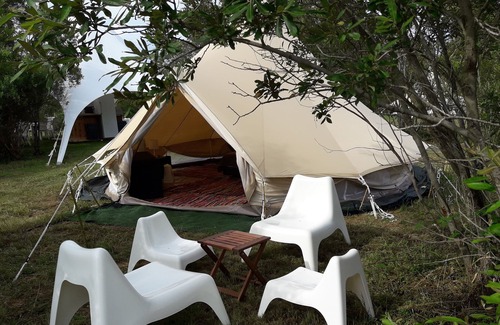 No tienes nada que aportar. Está alojado en una cómoda carpa de 20 metros cuadrados que puede acomodar a tres personas o dos adultos y dos niños menores de doce años.