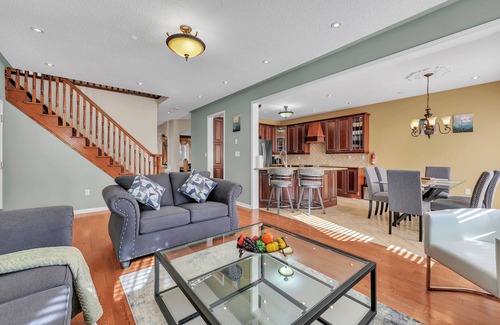 Esta casa de vacaciones tan agradable en Brampton lo pone todo a tu alcance. Si subes al coche, estarás a 18min en coche de Vaughan Mills Mall (centro comercial) y a 21min en coche de Parque temático Canada's Wonderland. Además, el alojamiento dispone de garaje donde podrás dejar tu vehículo.