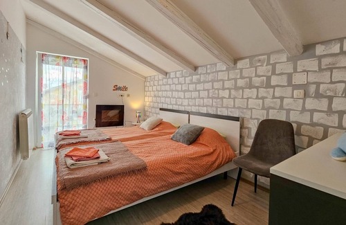 Apartment can accommodate 5 guests. Beds are situated in 2 sleeping rooms, but also in the living room, within 74m2. Guests can use a private terrace to enjoy the warm summer evenings. For full enjoyment and relaxation there is a private barbecue for this accommodation guests only. During stay, there is a private pool for relaxation and pleasure. This accommodation unit welcomes pets at no additional costs.