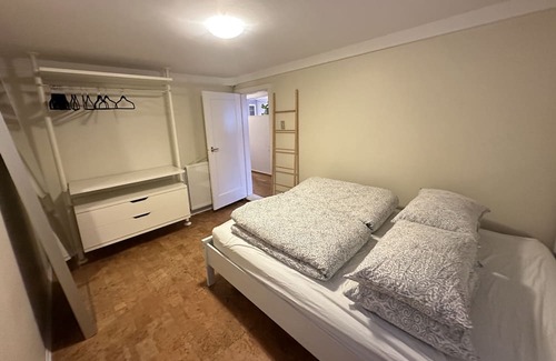 Our apartment is in the basement of the house, Master bedroom has Double Bed (140x200cm), second bedroom has single bed (90x200cm), in our living room we have two sleeping sofas. In the laundry room we have washing machine and dryer.