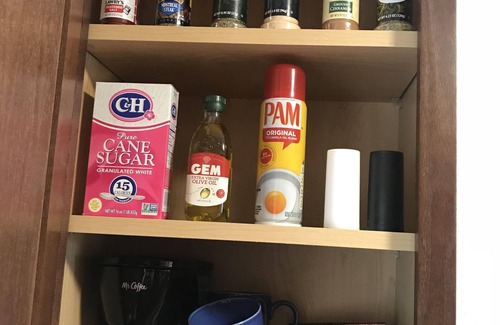 También en el piso principal, la cocina moderna de tamaño completo está equipada con utensilios, platos y utensilios de cocina. Traiga sus compras y prepare sus propias comidas. Se proporcionan algunos alimentos como condimentos y condimentos, una variedad de tés / café / saborizantes y cremas / sidra de manzana / chocolate caliente. También proporcionamos huevos frescos de nuestras gallinas.