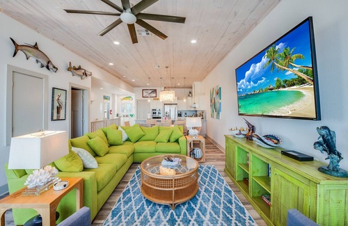 By Air & Sea es una nueva casa adosada de lujo de 2,000 habitaciones y 3 habitaciones, 3. 5 baños en Airport Marina Townhomes ubicada en Island Moorings Marina. Esta es una unidad especialmente impresionante, ya que es una unidad final con ventanas laterales y espacio al aire libre a nivel de la azotea. El elevador va a los 3 niveles más el techo. Características del techo tiene jacuzzi privado, cocina al aire libre / salón. Ubicación ideal para grupos de pescadores o amantes de la playa, en la ruta del coche de golf. (Piper Blvd se convierte en Beach Access 1A.) Conveniente para restaurantes y tiendas. Depósito de seguridad de $ 100 para acceso privado a la bañera de hidromasaje. 3 lujosas habitaciones con baños adjuntos (2 reyes con colchones nuevos de espuma viscoelástica, la habitación con literas tiene reina sobre reina + nido doble). Además, hay un sofá cama en la sala de estar. Gran lugar para caminar o andar en bicicleta, cerca del sitio de observación de aves, puedes pescar o pescar cangrejos en la pared del mar, poner tu bote en Island Moorings y estará muy cerca. l Por la noche, disfrute de las luces ambientales del puerto deportivo, ¡puestas de sol para morirse! Su familia volverá año tras año. El deslizamiento del barco es de $ 30 / noche o gratis con una estadía de 3 o más noches. Debe proporcionar un comprobante de seguro para usar el resbalón SRL541604