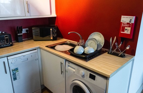 Prepara una comida casera en la cocina, equipada con horno, placa de cocina y frigorífico, además de hervidor eléctrico, microondas y utensilios de cocina. Conéctate al wifi, o relájate frente a un Smart TV. El cuarto de baño incluye un secador de pelo, toallas y papel higiénico. No necesitarás llevarte mucho equipaje, porque hay una lavadora. Otras comodidades de este alojamiento de 2 dormitorios y 1 baño incluyen ropa de cama, calefacción y una mesa de comedor.