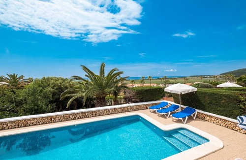 Beautiful single storey modern style villa located on the hillside of Torre Solí with magnificent views of Son Bou beach.