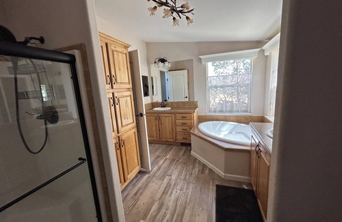 Este alojamiento de 3 dormitorios y 2 baños cuenta con chimenea y aire acondicionado. Conéctate al wifi gratis, o relájate frente a la televisión por cable o satélite. El cuarto de baño incluye un secador de pelo, toallas y papel higiénico. Prepara una comida casera en la cocina, equipada con horno, placa de cocina y lavavajillas, además de microondas. Podrás viajar con poco equipaje, porque tendrás una lavadora y una secadora a tu disposición. Otras comodidades incluyen ropa de cama, una tabla de planchar y calefacción.