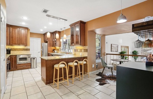 Al instalarte en este alojamiento de 5 dormitorios y 2.5 baños, encontrarás una sala de estar, un comedor, una zona para barbacoas y aire acondicionado. El cuarto de baño incluye un secador de pelo, toallas y papel higiénico. Prepara una comida casera en la cocina, equipada con horno, placa de cocina y frigorífico, además de cafetera y tetera, hervidor eléctrico y máquina de hielo. Y como podrás aprovechar la lavadora y la secadora, no te hará falta llevar mucho equipaje.