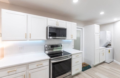 La cocina está equipada con frigorífico y lavavajillas, además de cafetera y tetera, microondas y tostadora. Conéctate al wifi, o relájate frente a televisión. Y gracias a la lavadora y la secadora, podrás viajar con poco equipaje. Otras comodidades de este alojamiento de 2 dormitorios y 2 baños incluyen ropa de cama y aire acondicionado.