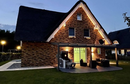 La piscina de la casa todavía está disponible para nuestros huéspedes. La villa está situada en Rerik, en el tranquilo parque de vacaciones del Mar Báltico. La zona de bienestar privada con sauna y piscina cubierta (7,3 x 3,5 m y temperatura del agua de 26°C) permite diversión y relajación las 24 horas del día, sin importar el clima. En los días fríos, disfrute del acogedor calor de la chimenea de gas en el espacioso salón-comedor de 60 m². Las amplias habitaciones de arriba tienen aire acondicionado, televisores inteligentes y barras de sonido Bluetooth. Los dos grandes cuartos de baño ofrecen un nivel de baño excepcional (ducha, bañera grande, calentador de toallas, etc.). La propiedad de casi 1.000 metros cuadrados, rodeada por un muro de piedra, invita a jugar y relajarse. Gracias al techo de cristal se puede utilizar la terraza incluso con mal tiempo.