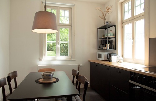 Este espacioso apartamento está ubicado en la planta baja de una histórica Stadtvilla construida en el siglo XVIII en la antigua muralla de la fortaleza de la ciudad. Tiene techos altos; Mobiliario moderno y antiguo.