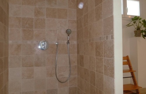 Dos baños, uno con cabina de ducha y una SE, una cocina de verano y una piscina segura.