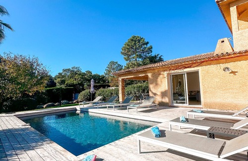 Villa Capanaccia Di Arasu: Villa con Piscina Climatizada en Arasu, Santa Lucía de Porto-VecchioDescubra esta suntuosa villa completamente renovada en 2022, ubicada en Arasu, en Saint-Lucie de Porto-Vecchio. A pocos minutos a pie de la hermosa playa de San Ciprianu y del famoso restaurante Le Cabanon Bleu, esta villa ofrece todo el confort necesario para unas vacaciones inolvidables en el sur de Córcega.Descripción de la VillaCon una superficie de 150 m2, esta espaciosa villa puede alojar hasta 10 personas en un entorno tranquilo y cálido.Las Habitaciones* Dormitorio 1 (planta alta): Cama Queen Size (160x200) con baño privado y aseo.* Dormitorio 2 (planta baja): Cama Queen Size (160x200) con baño privado.* Dormitorio 3: Cama Queen Size (160x200).* Dormitorio 4: Dos literas (90x180), ideal para niños.* Instalaciones sanitarias: Un cuarto de ducha independiente y dos aseos independientes.Las Zonas Comunes* Salón / Comedor: Un espacio luminoso y acogedor equipado con TV.* Cocina totalmente equipada: Lavavajillas, microondas, cafetera Nespresso, cafetera de filtro, Cookeo y otros equipos modernos.* Comodidad adicional: La villa tiene aire acondicionado y WIFI. También hay plancha, secador de pelo, lavadora y secadora de ropa.Al Aire Libre* Jardín y piscina: Un gran jardín plano y vallado de 1200 m2 rodea una terraza de madera de 100 m2. La piscina climatizada y segura (8x4 m, alarma) es ideal para relajarse.* Equipamiento exterior: 8 tumbonas, 2 sombrillas y una plancha para disfrutar plenamente de los hermosos días soleados.* Estacionamiento: Espacio para 3 a 4 autos dentro de la propiedad.Servicios y Condiciones* Incluido: Limpieza y ropa de hogar.* Normas: Prohibido fumar, se admiten mascotas, se prohíben fiestas, respeto al barrio (no hay ruido después de las 22h).* Fianza: Se solicitará una fianza antes de entrar al recinto.Ubicación Ideal* Proximidad : o a 8,9 km de Santa Lucía de Porto-Vecchio.o a 14,9 km de Porto-Vecchio.o a 9,1 km del supermercado Super U.o a 37,2 km del aeropuerto de Figari.o a 121 km del aeropuerto de Bastia.No se pierda esta oportunidad única de alojarse en un entorno excepcional en el sur de Córcega. Para cualquier información o reserva, contáctenos hoy.