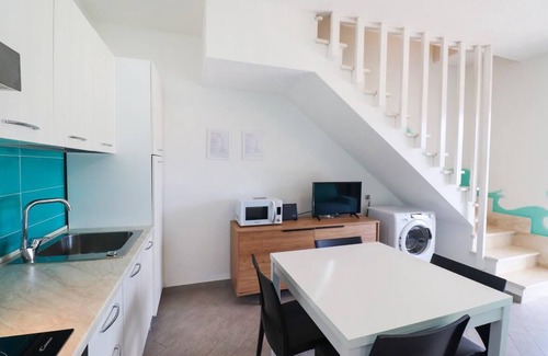 Villa nueva que consta de una sala de estar con cocina pequeña en la planta baja y un gran jardín privado, dormitorio doble en la planta superior, baño y terraza. La casa está equipada con todas las comodidades, incluido aire acondicionado en todas las habitaciones.