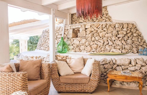 Outside there is also an area where it will be possible to organize moments of conviviality using the outdoor oven. A large patio open to one side, with wicker table and sofas, will hold you in a familiar embrace during your afternoon or evening moments of rest.
