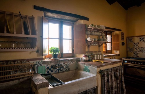 Ground Floor The right wing is 260 sq mt (7 people) A characteristic kitchen of the Florentine Restart firm with 9 burners and 2 ovens; small microwave, freezer, dishwasher, toaster, american coffee machine, mixer and boiler. Dining table for 8 people.The two big kitchens of the villa are equipped for cooking with friends and all the family or for the unique experience of a cooking class with a typical Tuscan “mamma”. Details :External space, with access from the kitchen, with a big table, perfect corner, to have a relaxing breakfast; access to a lounge room with satellite TV and a functional fireplace, warm and romantic lounge with original colored walls. This room, called the blue room, has a private bathroom with a large shower and direct access to the pool; comfortable divans and two beautiful arm chairs. The Tuscan terracotta gives this large area a classic, traditional Tuscan atmosphere. Dining area, 15 people. Access to the patio with iron and wooden table for 4 people and a divan for 2. Double bedroom with access to the outside, ensuite bathroom with large double shower and access to the covered swimming pool. Second double bedroom with bathroom ensuite and large double shower and access to the outside near the kitchen well. First FloorThe right wing Large double bedroom with a canopied bed, 2 x 2 mts, bathroom ensuite with hydromassage with view. Second large double bedroom with ensuite bathroom and functional fireplace. Villa Privata is not only a comfortable and modern house but also a piece of Tuscan style living; wooden floors, beams, cotto, stone…..and much more. It is not only a villa, but a unique experience in one of the most beautiful and unforgettable parts of the world.