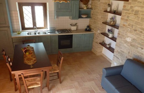 Esta casa de piedra verdaderamente distintiva se ha convertido recientemente en una villa. Se encuentra en el medio del campo de Le Marche, no lejos del famoso Parque Nacional Sibillini Mountain y de las playas de arena Riviera delle Palme. El mobiliario interno, combinado con la forma general del edificio, le da a Villa Monti un ambiente cálido y acogedor.