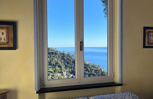 Villa con frescos en todas las fachadas típica de Liguria situado en una colina tranquila Sant'Ambrgio Zoagli (5 min. De Rapallo / 10 min. De Portofino) con un gran jardín en el campo y en varios niveles y terrazas con vistas mar en la hermosa bahía de Portofino. La casa tiene wi-fi, 3 habitaciones dobles (una doble), baño, lavadora, una cocina completa con nevera, estufa, horno y microondas, un salón con dos sofás y varias sesiones con vista al mar en el Golfo de Portofino. La casa es independiente, tiene una entrada privada y en el jardín también hay una pérgola cubierta con mesa y sillas para comer y disfrutar de las impresionantes vistas. Hay un montón de aparcamiento gratuito en la casa.