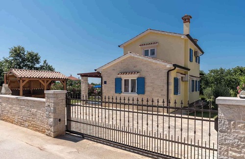 The standig individually villa is modern and functional furnished. The property is located on a farm, on the outskirts. The domicile is also popular because of the quiet and sunny location. For use are available: sunbathing area, parasol, sun lounger, grill possibility, terrace and garden furniture.LocationNova Vas/Poreč. The villa is located on a farm, on a closed garden plot with meadow, flowers and bushes, limited by a fence. The landlord does not live in the house or on the property. The spacious holiday home has 3 bedrooms, a living room and a fully equipped kitchen with a dishwasher. For additional privacy, the accommodation has a private entrance. The special feature of this villa is the private pool. Guests will find a stove, refrigerator, microwave and toaster in the fully equipped kitchen. Guests of the villa also have a barbecue available. This villa has a terrace, air conditioning, coffee machine and flat-screen TV. The unit has 3 beds. The access goes via a side road (asphalted). Parking lot on the property. Specialair conditioner. Facilities: internet access (WLAN). TV reception takes place via satellite. PoolThe pool facility can be used from the beginning of May to mid of October. Dogsnot allowed. DistancesShopping opportunity 1100 m, restaurant 1200 m, town center 6 km. airport in Portorož 36 km. The Villa is located in Poreč, 9.2 km from Euphrasian Basilica, 9.2 km from Poreč Main Square and 10 km from Aquacolours Poreč Water Park. With free private parking, the facility is 22 km from Aquapark Istralandia and 43 km from the Cathedral of St. Euphemia in Rovinj.In summer: Bathing possibility 6,7 km in Spadici Materada Square (beach 6,7 km in Spadici Materada Square with gravel, stones and rocks). DivisionVilla, 2 floors, 4 rooms (including 3 bed rooms), 180 sqm, in total 6 beds. Smoking is prohibited in the property. RoomThe entrance in your villa is located on the ground floor and is at ground level.Ground floor: Living room with sitting area, TV and access to the terrace (garden furniture, 1 table, 6 chairs). Bedroom with 1 double bed and access to the terrace. Kitchen with dining area (6 seats), electric stove (4 plates), oven, extractor hood, fridge, microwave, coffee machine, toaster, electric kettle and access to the terrace. Bathroom with shower, 1 sink, WC and window. 1st floor: 2 bedrooms each with 1 double bed and access to the balcony (garden furniture, 1 table, 2 chairs). Bathroom with shower, 1 sink, WC and window. Bathroom with bathtub, shower, 1 sink, WC, bidet and window. Terms of lease and pricesIncluded in the priceOutdoor pool, air conditioning, sunloungers at the pool, parking place, electricity, gas, water, final cleaning, bed linen, hand towels, pool, Wireless Internet access. Side costs-Additionally(Payable when booking)/registration fee obligatory 3,80 € per person per stay.Costs on the spot:/Obligatory:local tax by local tariff.Deposit:EUR 200,-/object.
