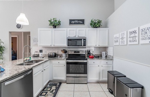 Esta villa está en Kissimmee y es una ubicación fantástica desde la que recorrer los alrededores. A los amantes de la naturaleza y el aire libre les encantará estar a 11min en coche de Parque del lago de Kissimmee y a 12min de Osceola Heritage Park. Estarás a 4min en coche de Cena con espectáculo Medieval Times y a 5min también en coche de Centro turístico Give Kids the World Village.