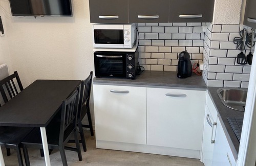 La cocina está equipada con horno, placa de cocina y frigorífico, además de cafetera y tetera, hervidor eléctrico y microondas. Otras comodidades de este alojamiento de 1 dormitorio y 1 baño incluyen un sofá cama, servicio de limpieza disponible a petición y calefacción.