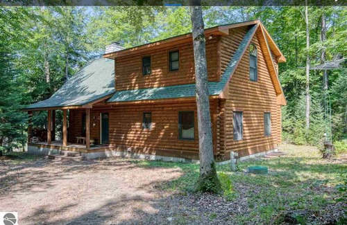 Welcome snowmobilers and skiers to a cozy log cabin on the Rapid River. | Casa en Kalkaska