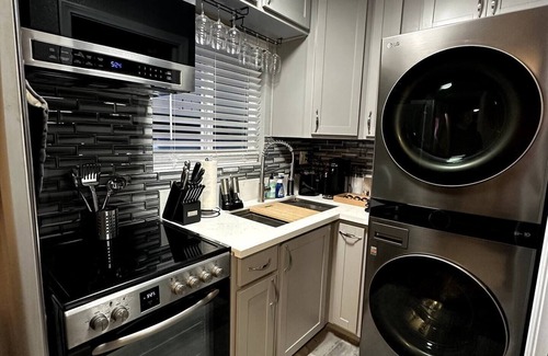 Este alojamiento de 1 dormitorio y 1 baño cuenta con una zona para barbacoas y aire acondicionado. Disfruta del wifi y de la televisión. El cuarto de baño incluye un secador de pelo, toallas y papel higiénico. Cuando dispones de horno, placa de cocina y microondas, no hace falta ir de restaurante cada noche. Podrás viajar con poco equipaje, porque tendrás una lavadora y una secadora a tu disposición. Otras comodidades incluyen ropa de cama, una tabla de planchar y calefacción.