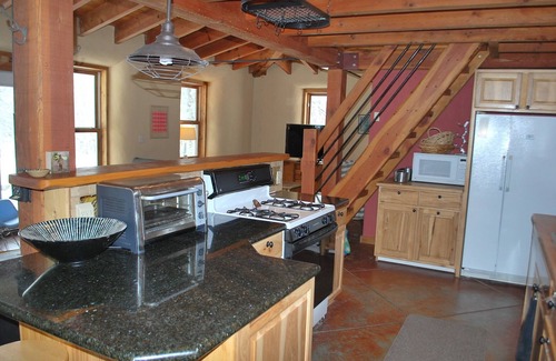 Factor Wow del desierto! Esta hermosa casa está escondida en un país de las maravillas boscosas, en el área de Badger Creek. Si te encanta el aire libre y anhelas un tiempo de inactividad en las montañas, ¡esto es para ti! Esta increíble casa de balas de paja tiene 2 dormitorios y 2 lofts para dormir. Puede dormir 6 en camas. Nueva cocina actualizada con gran fregadero de la granja. Ubicado en 1 acre de paisaje natural sereno. Hay 1 baño de buen tamaño con una hermosa ducha de azulejos con doble cabeza. Se permite 1 perro con una tarifa. Se proporcionan una lavadora y secadora apilables. Hay calor de propano o una estufa de leña para quitar el frío del verano si lo necesita. Este es un lugar perfecto para relajarse y descansar, hacer una caminata o un paseo en bicicleta de montaña frente a la puerta de su casa. La pantalla grande TV cuenta con DVD, libros y juegos para su entretenimiento. Tenga en cuenta que NO HAY WIFI en el hogar. La recepción del teléfono celular puede ser esporádica en el área, así que planifique en consecuencia, por favor. Disfrute de una corta caminata de 1 milla para ver los Tetons y una vista de Yellowstone.
