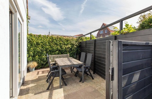 Esta casa de vacaciones cuenta con una terraza orientada al sur perfecta para tomar el sol, que inunda la sala de estar abierta con cálida luz natural a través de sus puertas correderas de cristal. La propiedad incluye comodidades esenciales como una lavadora, una trona y una cuna plegable para su comodidad. A sólo un minuto a pie de la playa, mientras que los servicios esenciales como un supermercado, panadería, carnicería, y una gama de opciones para comer están cerca. Situado en el centro de la ciudad, está a sólo 75 metros de la playa de baño, y en un corto paseo, se puede acceder a una farmacia, alquiler de bicicletas, y varios restaurantes deliciosos.